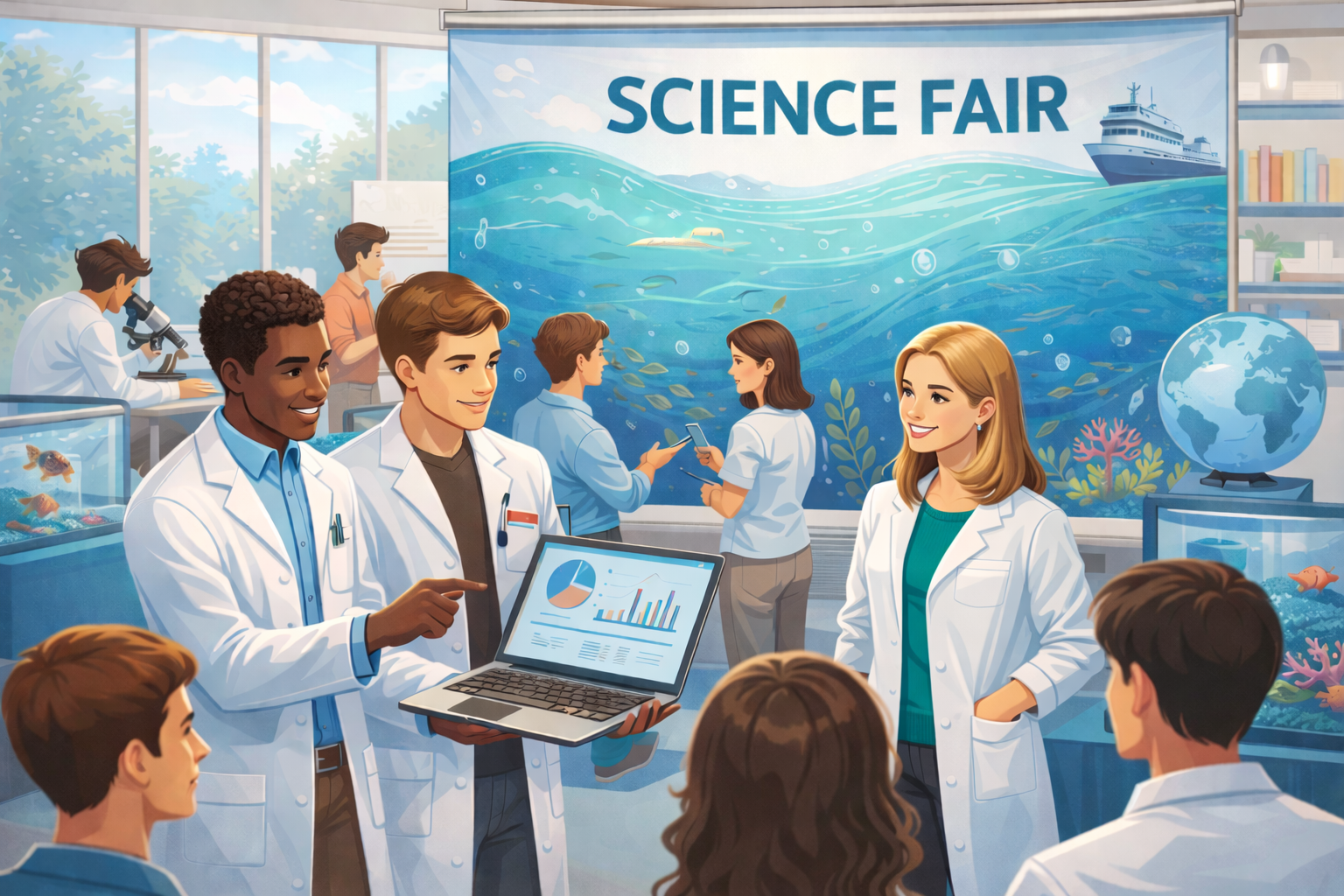 A hands-on science fair and science contests where students explore marine science and biotechnology through interactive exhibits.